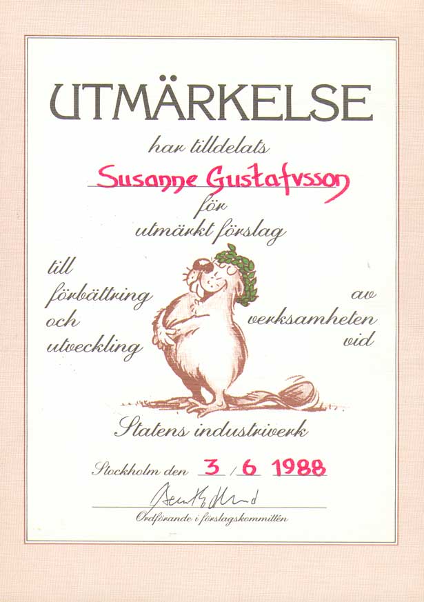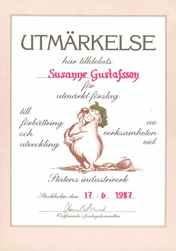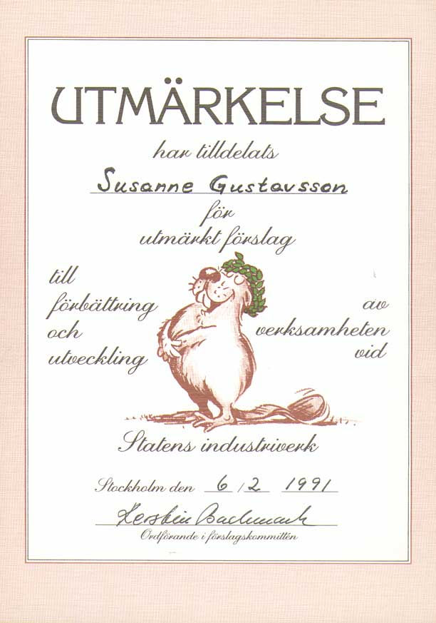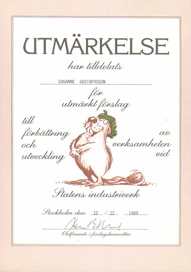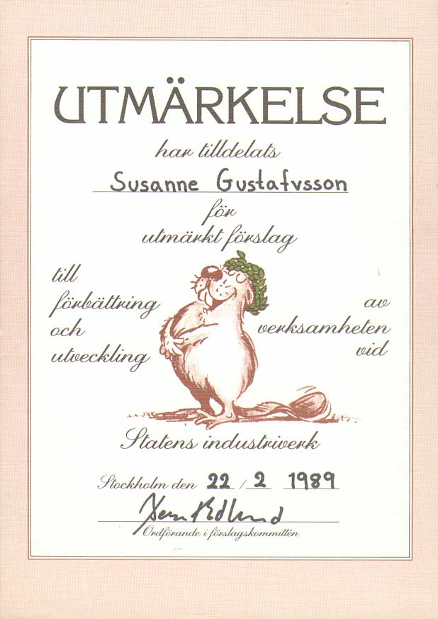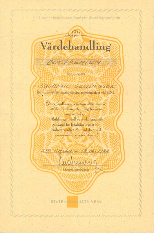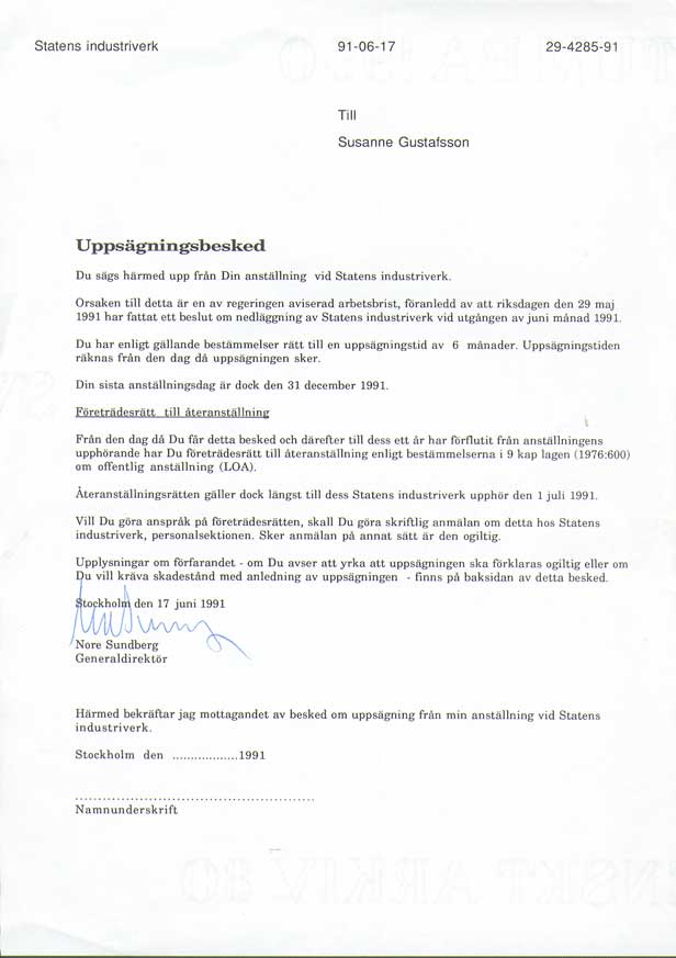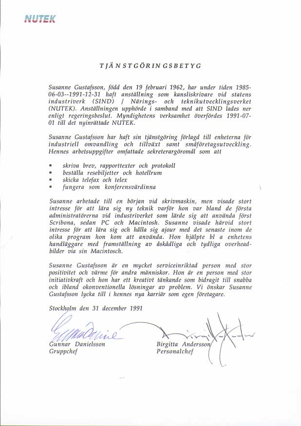 | Statens industriverk / Närings- och teknikutvecklingsverket | 850603--911231 | Kansliskrivare (sekreterare) | Tjänstgöringsintyg. Uppsägningsbesked 1, 2 Diplom 1, 2, 3, 4, 5, 6 |